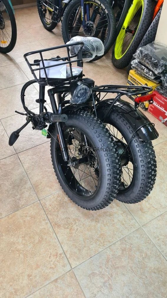 Шикарный электрический велосипед Фэт-байк на широких колесах обеспечивает повышенную проходимость! Мощный двигатель, литийионный аккумулятор, регулируемый руль!