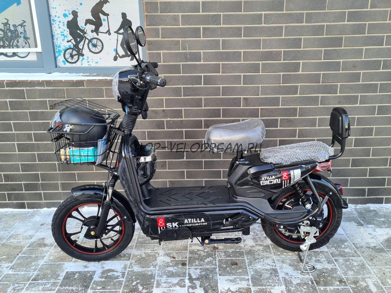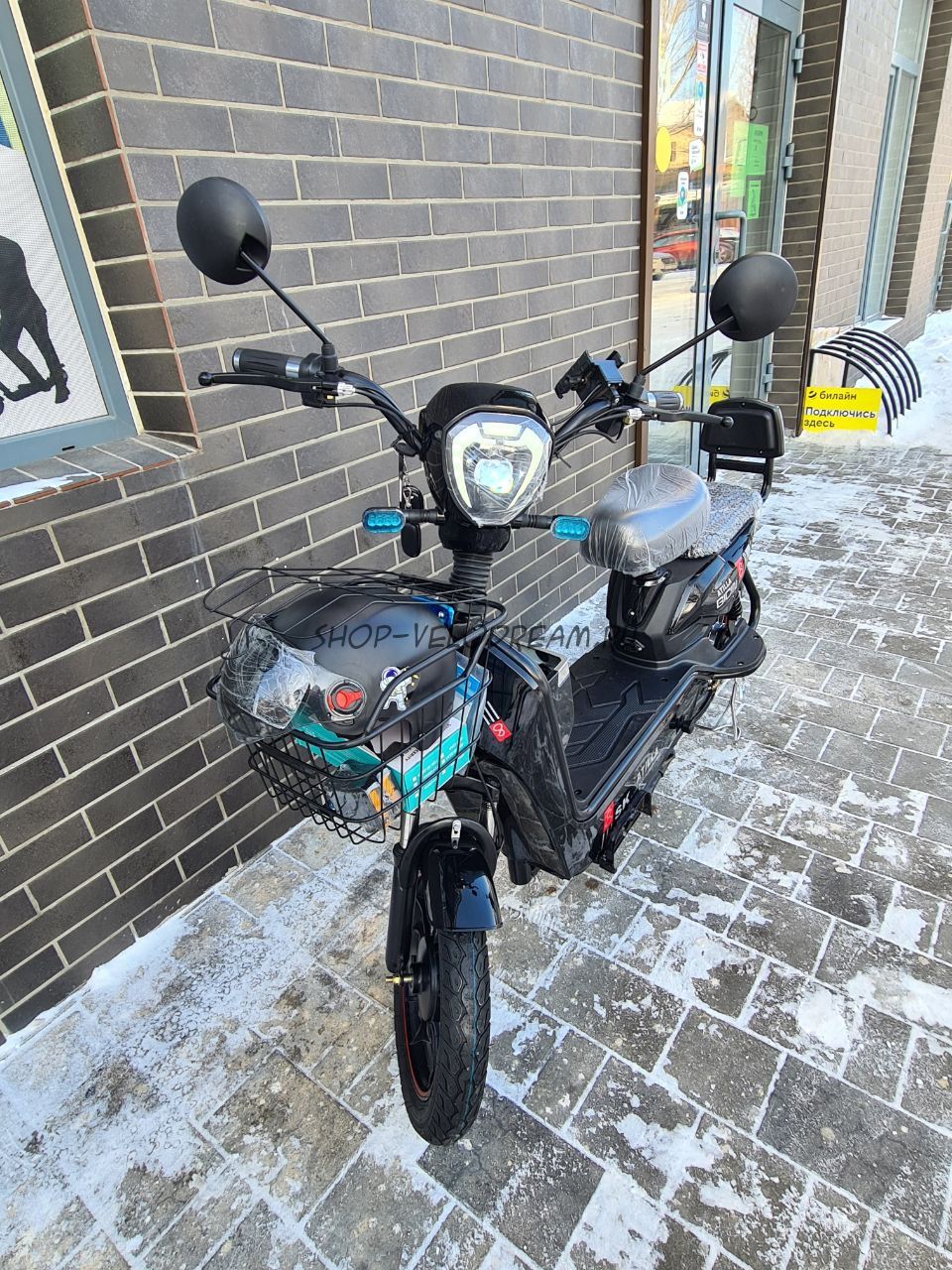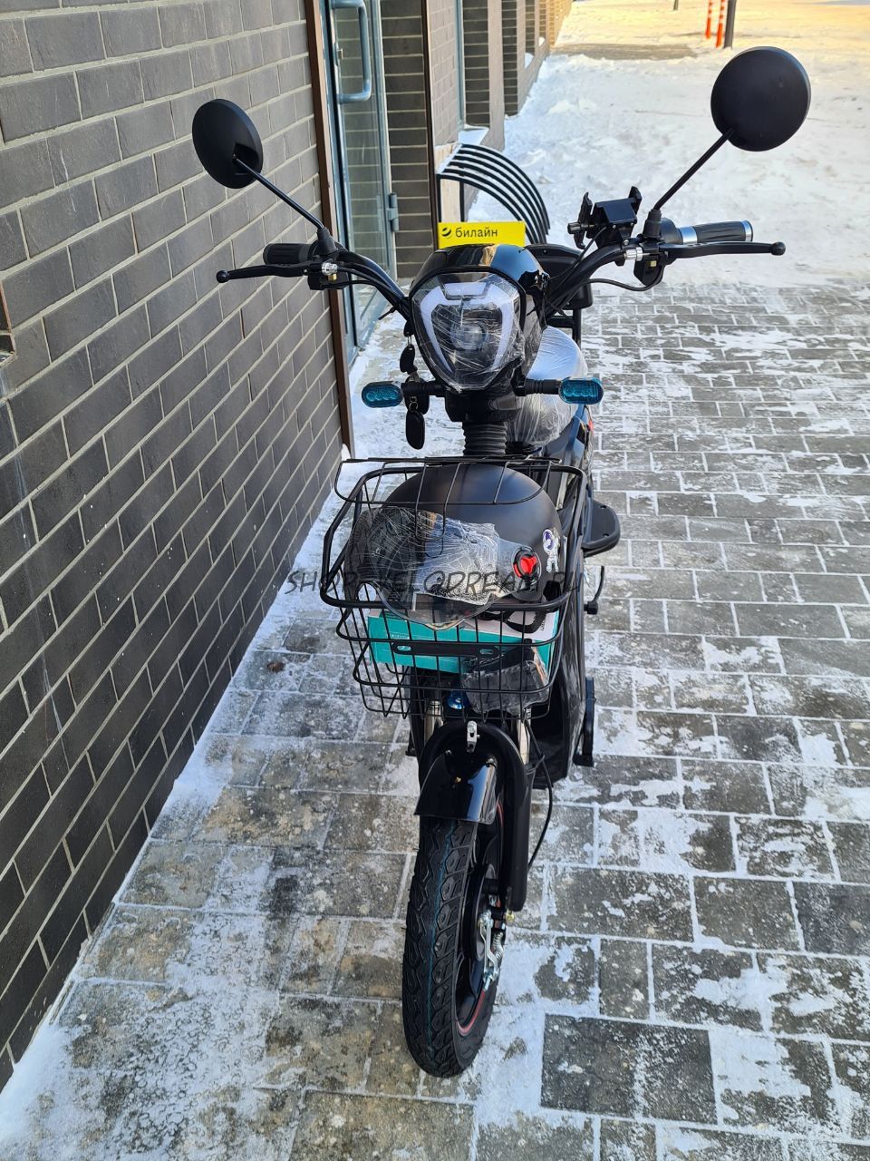 Комплектация включает: Корзину, зеркала заднего вида, держатель телефона с USB, зарядное устройство и шлем.