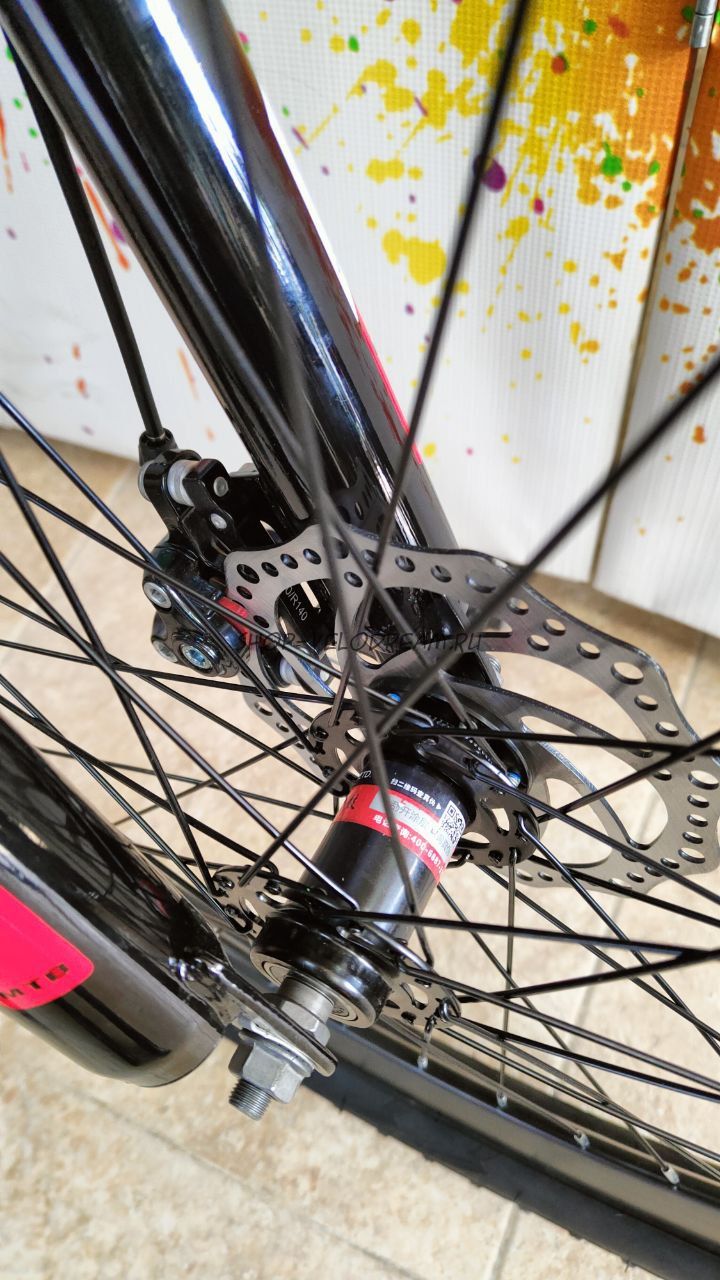 Велосипед полностью на промподшипниках, оснащен 21 скоростью, дисковыми тормозами передними и задними, что обеспечивает максимальную безопасность на дороге.