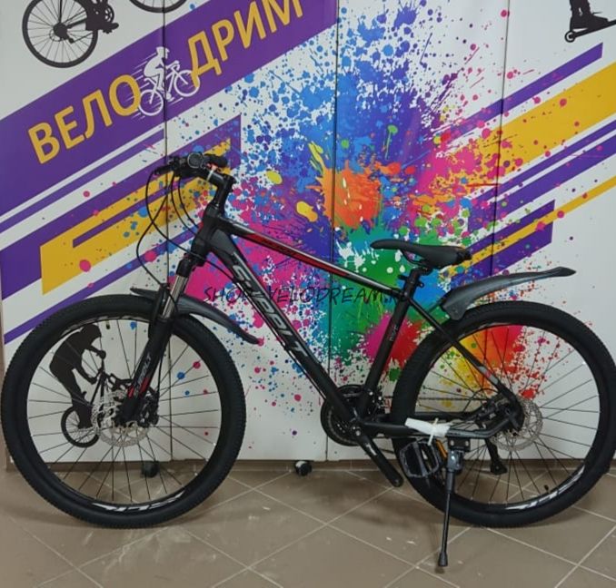 Стильный чёрный фирменный велосипед на гидравлических тормозах и алюминиевой регулируемая вилка! Отличный выбор для любителей комфортной езды!